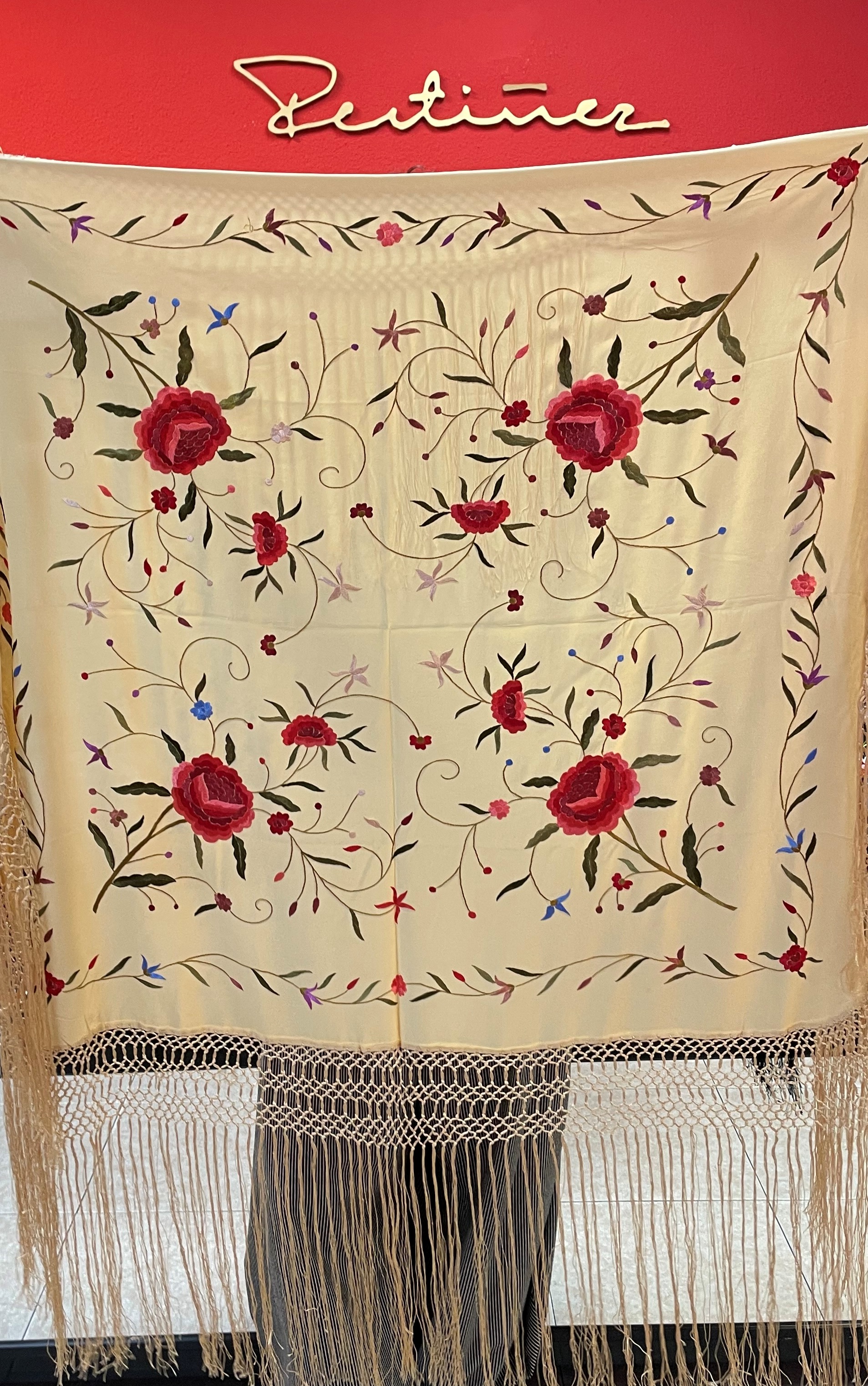 MANTON SEDA NATURAL 110X110 BORDADO A MANO FLECO HECHO A MANO FONDO BEIG BORDADO EN COLORES FLECO BEIG , ELEGANTE Y MUY LLAMATIVO . MUY COMBINABLE , PERFECTO PARA VESTIR ,TAMBIEN PARA UN REGALO INOLVIDABLE.ALGO QUE QUEDA PARA SIEMPRE POR LA INIGUALABLE CAIDA DE LA SEDA NATURAL.ALTA CALIDAD DE FLECO Y BORDADO.PORTES GRATIS.