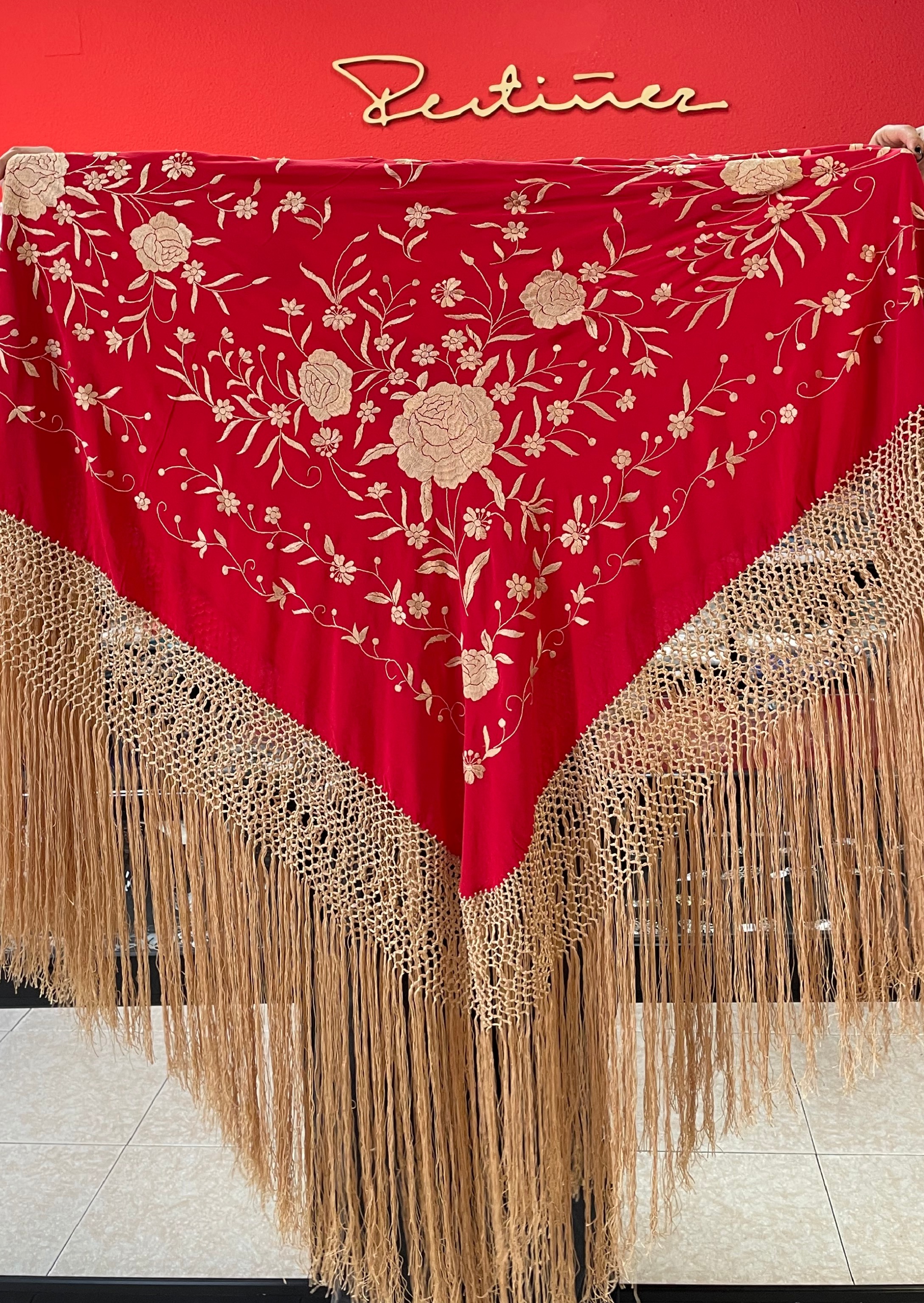 MANTON 100% SEDA NATURAL BORDADO A MANO, FLECO HECHO A MANO , MEDIDA 140X140 APROXIMADAMENTE, PESO CERCA DE 800 gr, DISPONIBLE ACTUALMENTE. PERFECTO PARA EL MUNDO DEL BAILE O PARA BODAS Y CELEBRACIONES .ELEGANTE Y POCO VISTA COMBINACIONDE COLORES.PRECIO AJUSTADO PARA LA CALIDAD DEL BORDADO Y EL FLECO