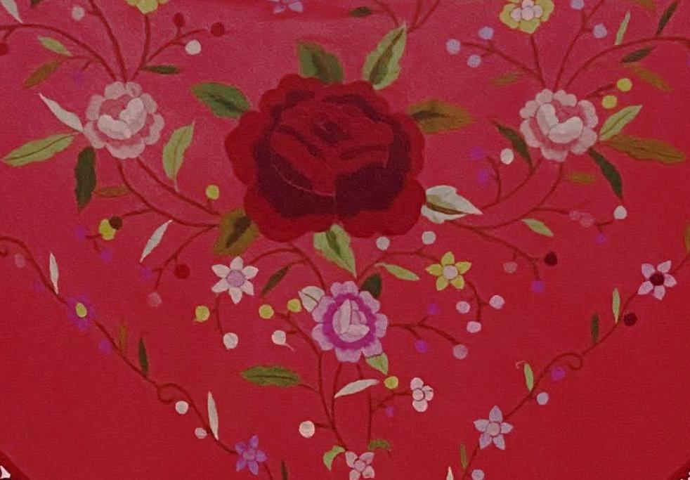 MANTON PICO DE SEDA NATURAL BORDADO A MANO, FLECO A MANO. PERFECTO PARA FLAMENCO, Y TAMBIEN COMO COMPLEMENTO PARA BODAS Y EVENTOS. TAMAÑO APROXIMADO 165X80. OTROS COLORES DISPONIBLES