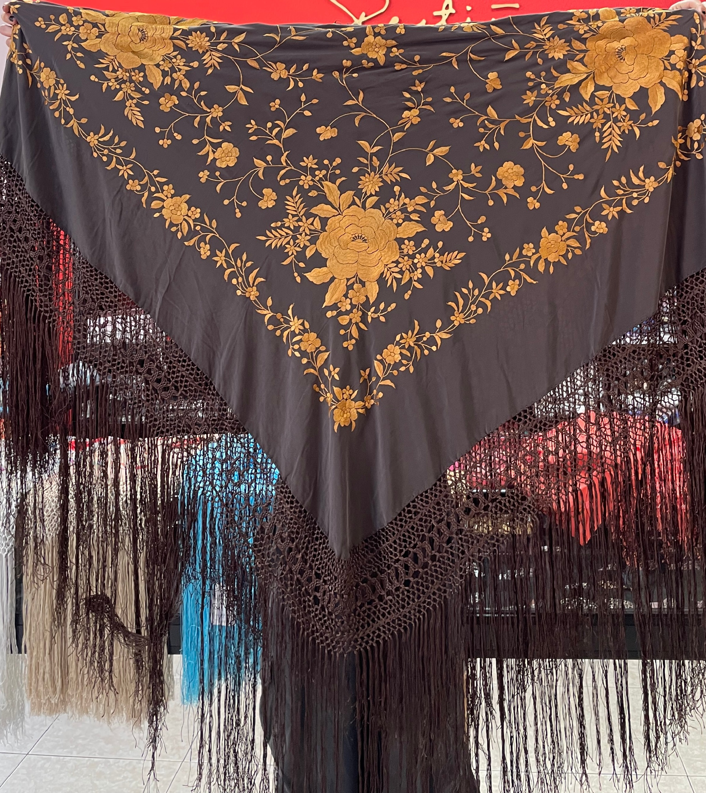 MANTON 100% SEDA NATURAL BORDADO A MANO, FLECO HECHO A MANO , MEDIDA 140X140 APROXIMADAMENTE, PESO CERCA DE 800 gr, DISPONIBLE ACTUALMENTE. PERFECTO PARA EL MUNDO DEL BAILE O PARA BODAS Y CELEBRACIONES .ELEGANTE Y POCO VISTA COMBINACIONDE COLORES.PRECIO AJUSTADO PARA LA CALIDAD DEL BORDADO Y EL FLECO
